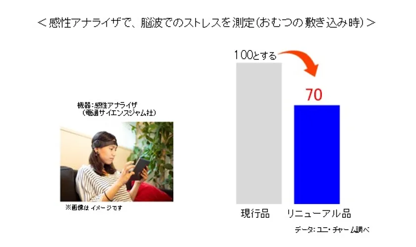 被験者に脳波計を装着してもらった上で、おむつ交換をしていただき、ストレス値を測定。
