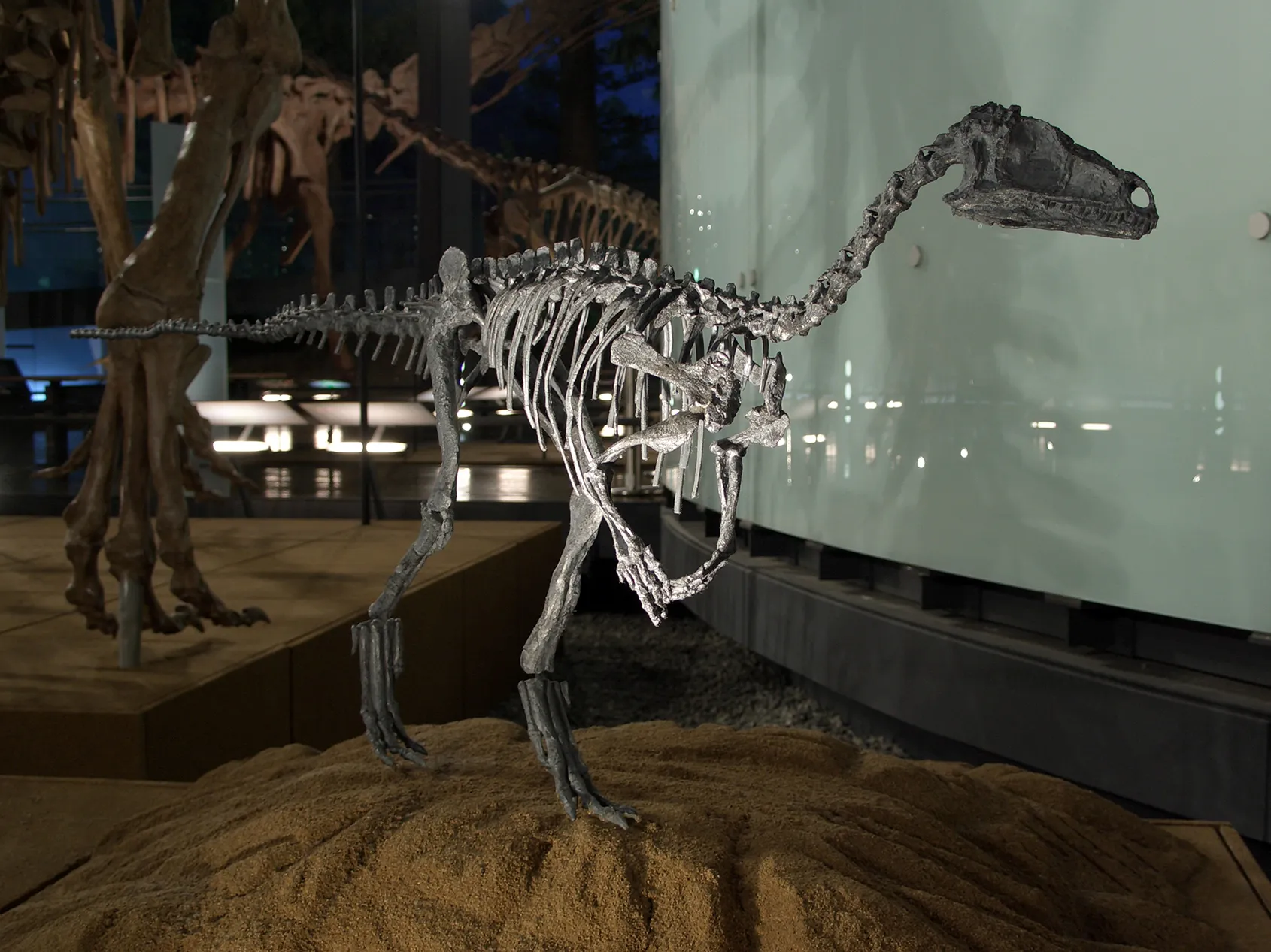 更に注目なのは、福井県立恐竜博物館以外では初展示となる新種恐竜の展示です。先月9月8日に福井県・福井県立恐竜博物館より発表がされ、大きな話題を呼んでいる福井県勝山市で発掘されたオルニトミモサウルス類の仲間の新属新種「ティラノミムス・フクイエンシス」の展示が急遽決定しました。この仲間の恐竜の新種が日本で見つかるのは初めてで、福井県で発見された6例目の新種恐竜になります。話題の「ティラノミムス・フクイエンシス」が今回初めて東京にお目見えします。